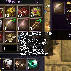 そういえばここ数日全然売れなかった弓の在庫が一気に売れてしまったのですが預言者が育ってきたという事なのでしょうか…。正直生産に掛かる費用とか計算するの面倒なので ( 材料の価格もころころ変わってて把握できず… ) 適当に置いてるのですが…というか正直…自分ではかなり…た、高めに置いてる感じなのですが…申し訳ない>< 買って頂いた方には本当に感謝です! でも最近西条の結果見てたりしても桁が違うんですよねぇ…。私は当てる事ができないのでやりませんが儲けてる人は桁違いにお金持ってるのかなぁ…。